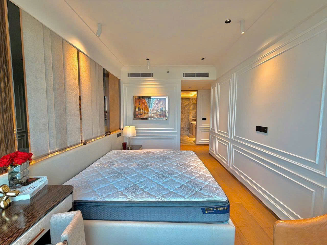 • Phòng ngủ được ốp sàn gỗ cao cấp nhập khẩu trực tiếp từ Châu Âu