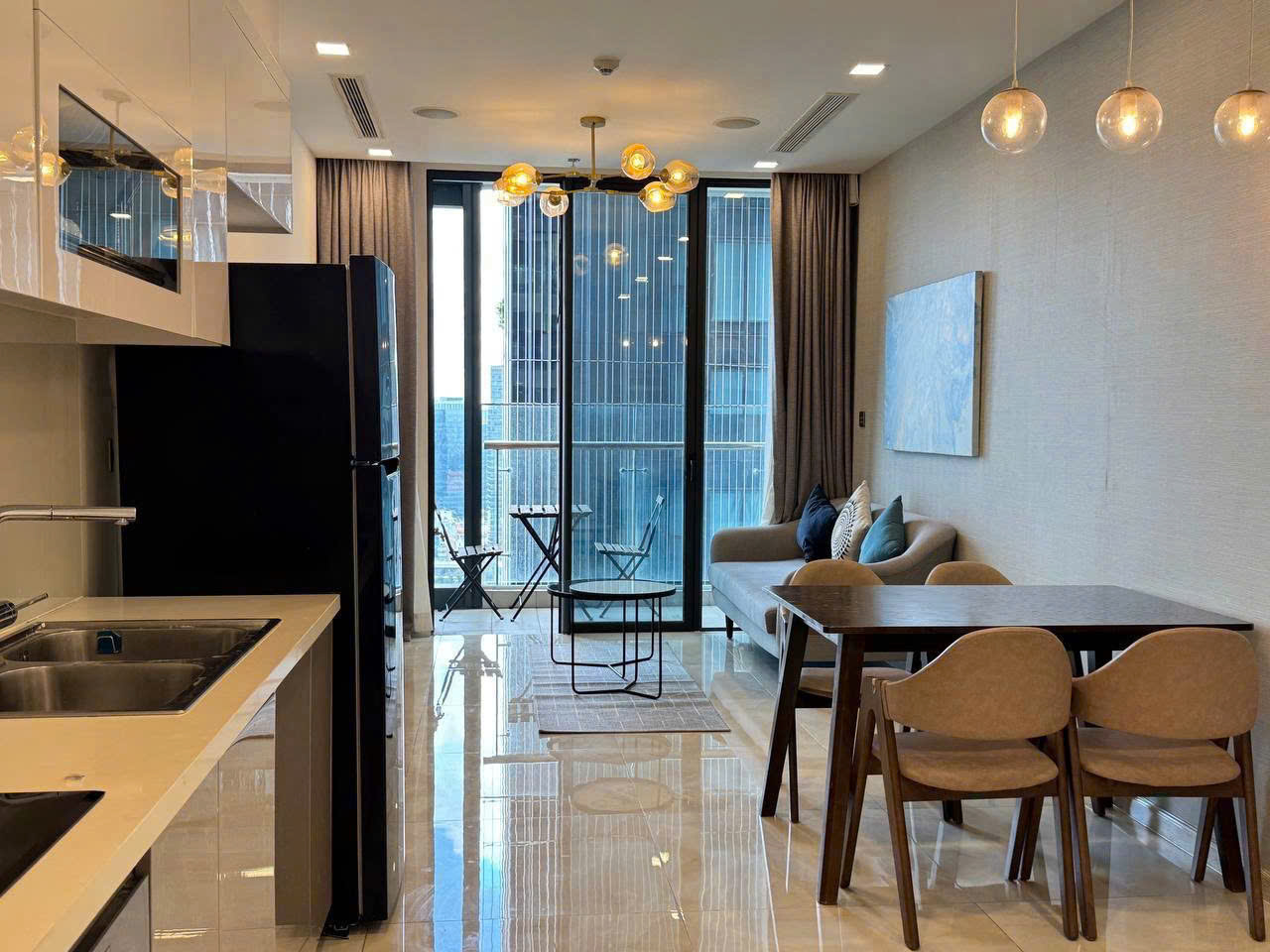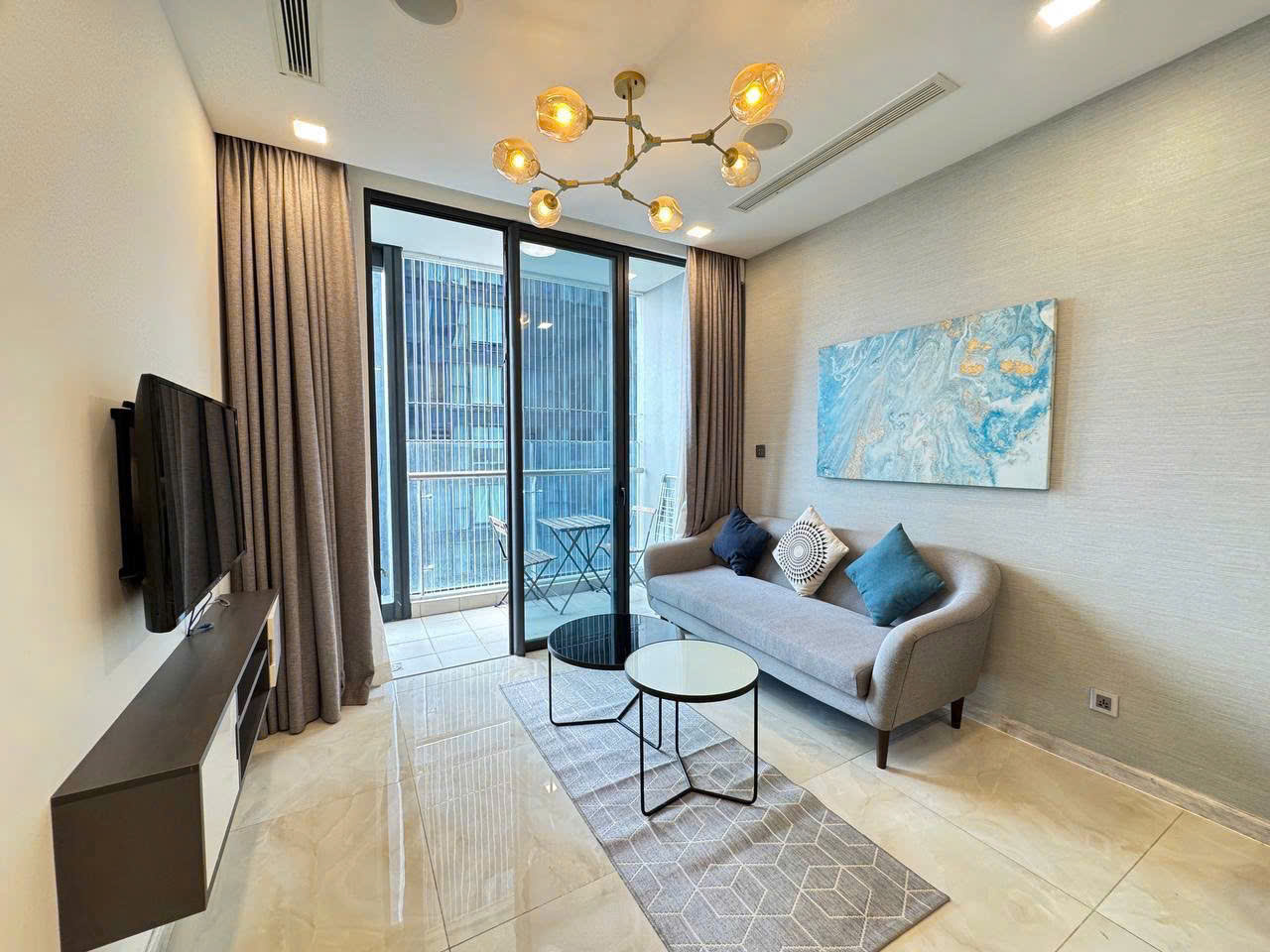 • Phòng khách rộng mở, ánh sáng tự nhiên tràn ngập, kết nối ra ban công view đẹp