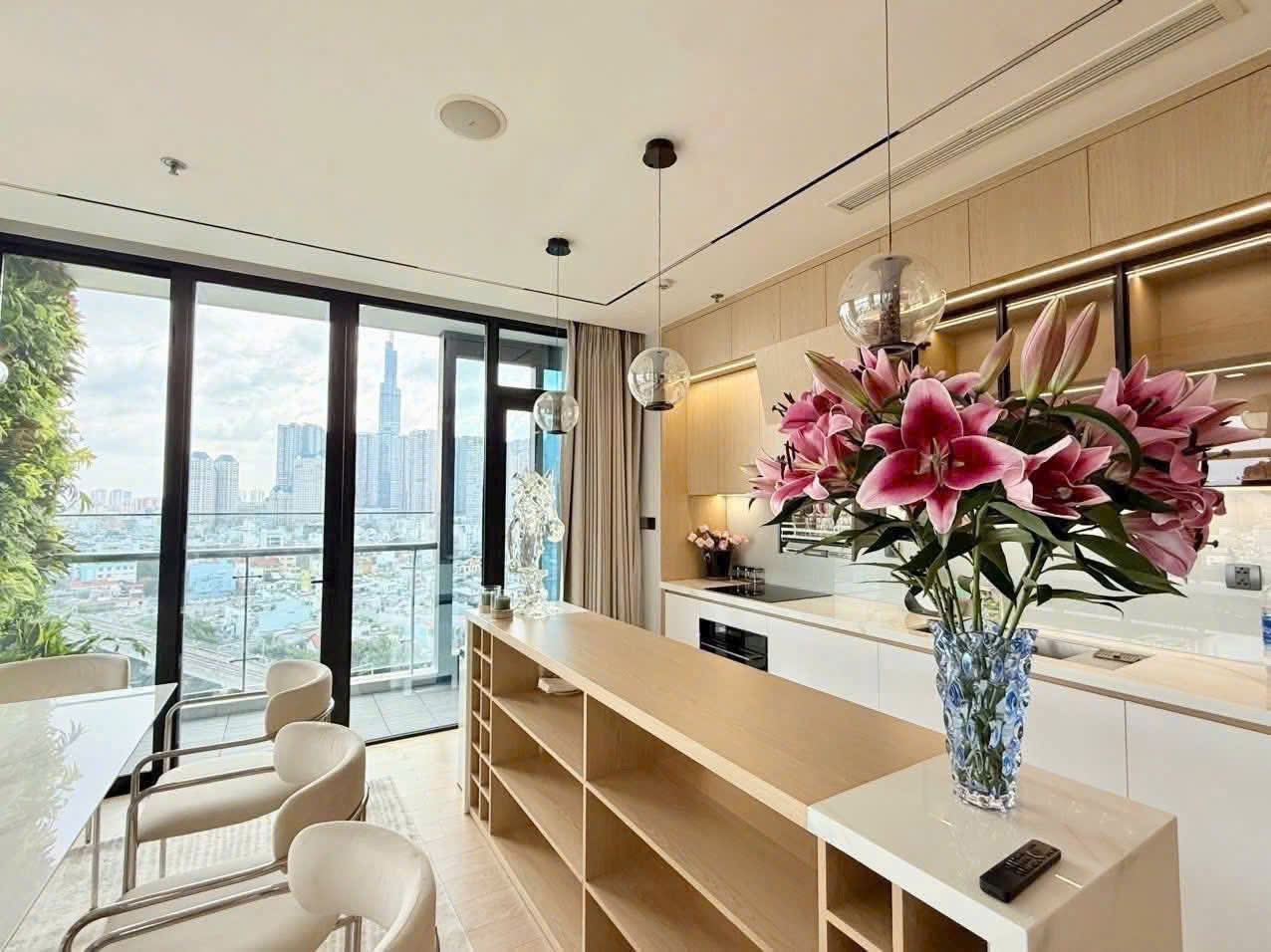 • Khu bếp gọn gàng, thiết bị âm tường hiện đại: lò nướng, bếp từ, máy hút mùi, tủ lạnh