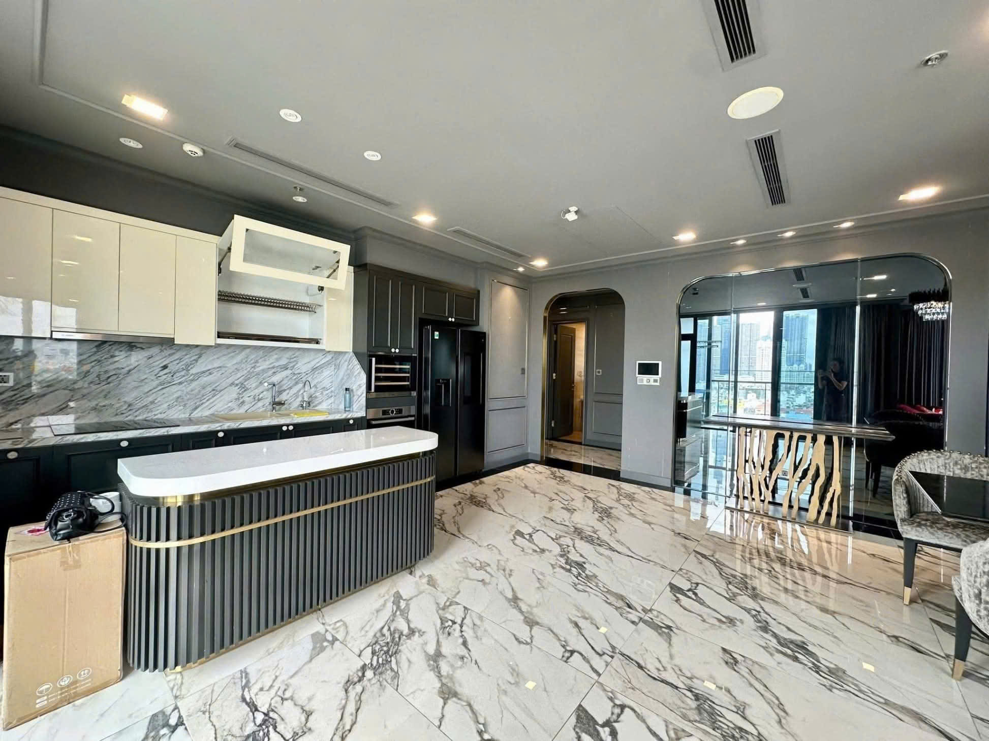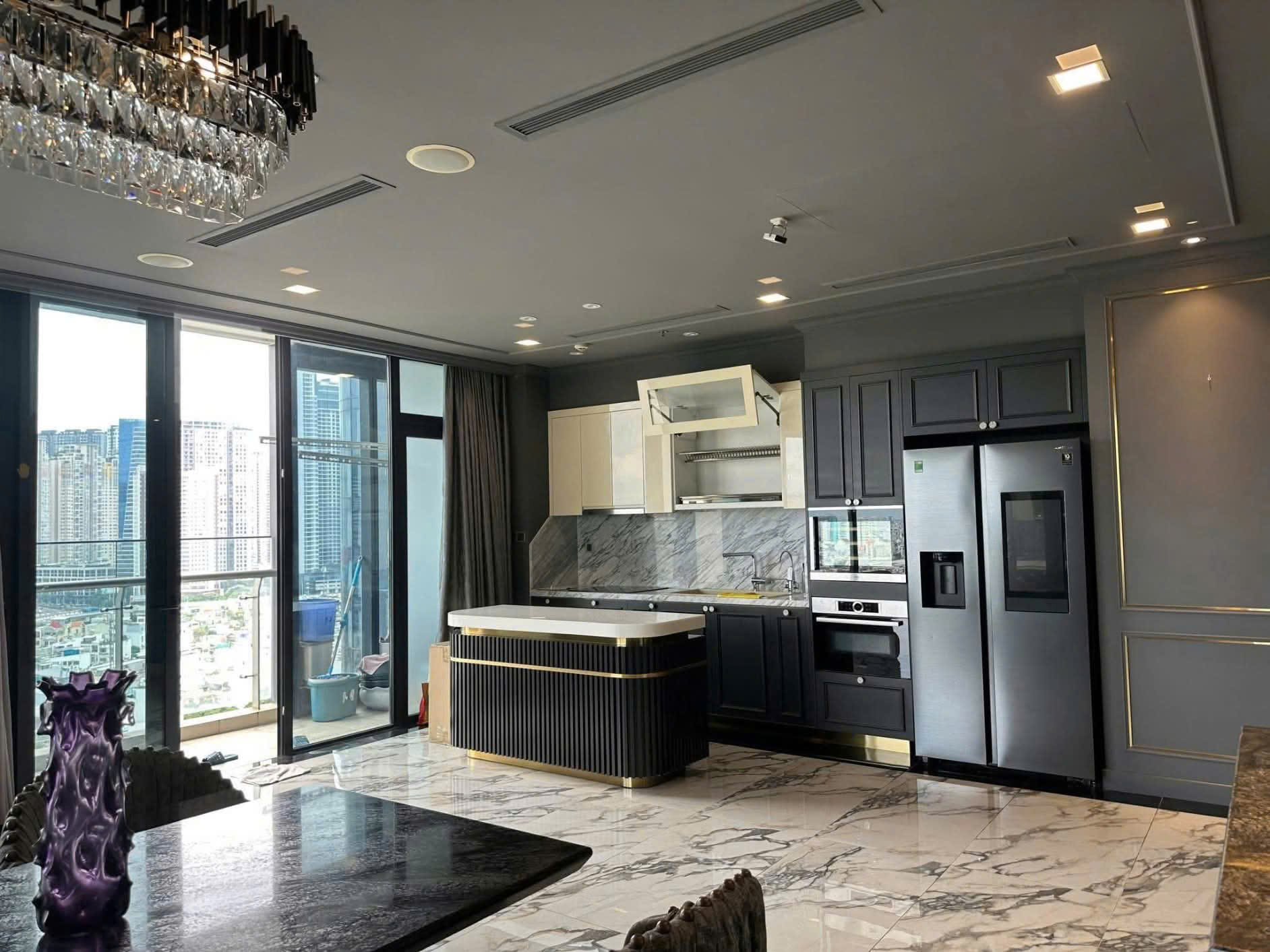 • Khu bếp gọn gàng, thiết bị âm tường hiện đại: lò nướng, bếp từ, máy hút mùi, tủ lạnh