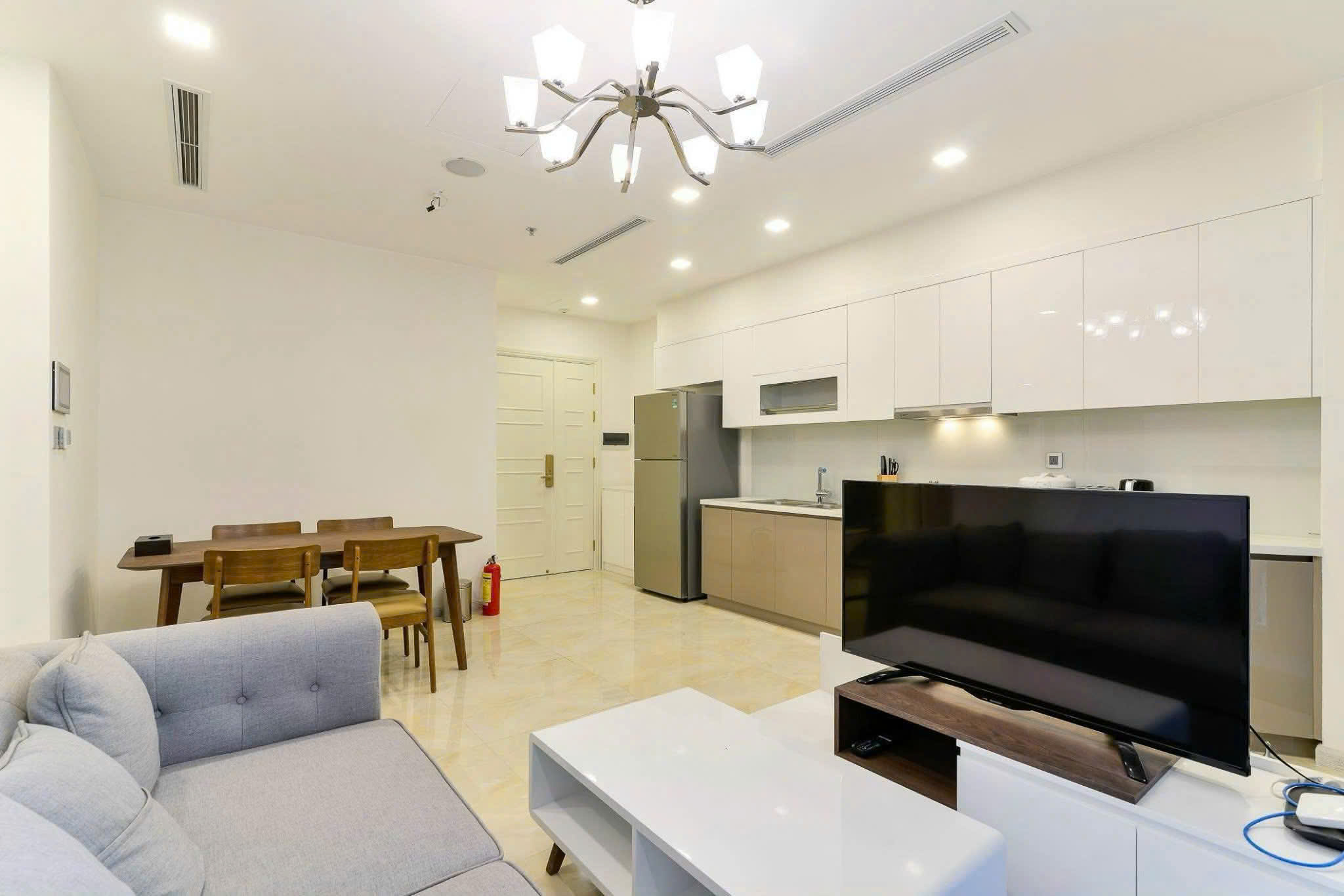• Khu bếp gọn gàng, thiết bị âm tường hiện đại: lò nướng, bếp từ, máy hút mùi, tủ lạnh