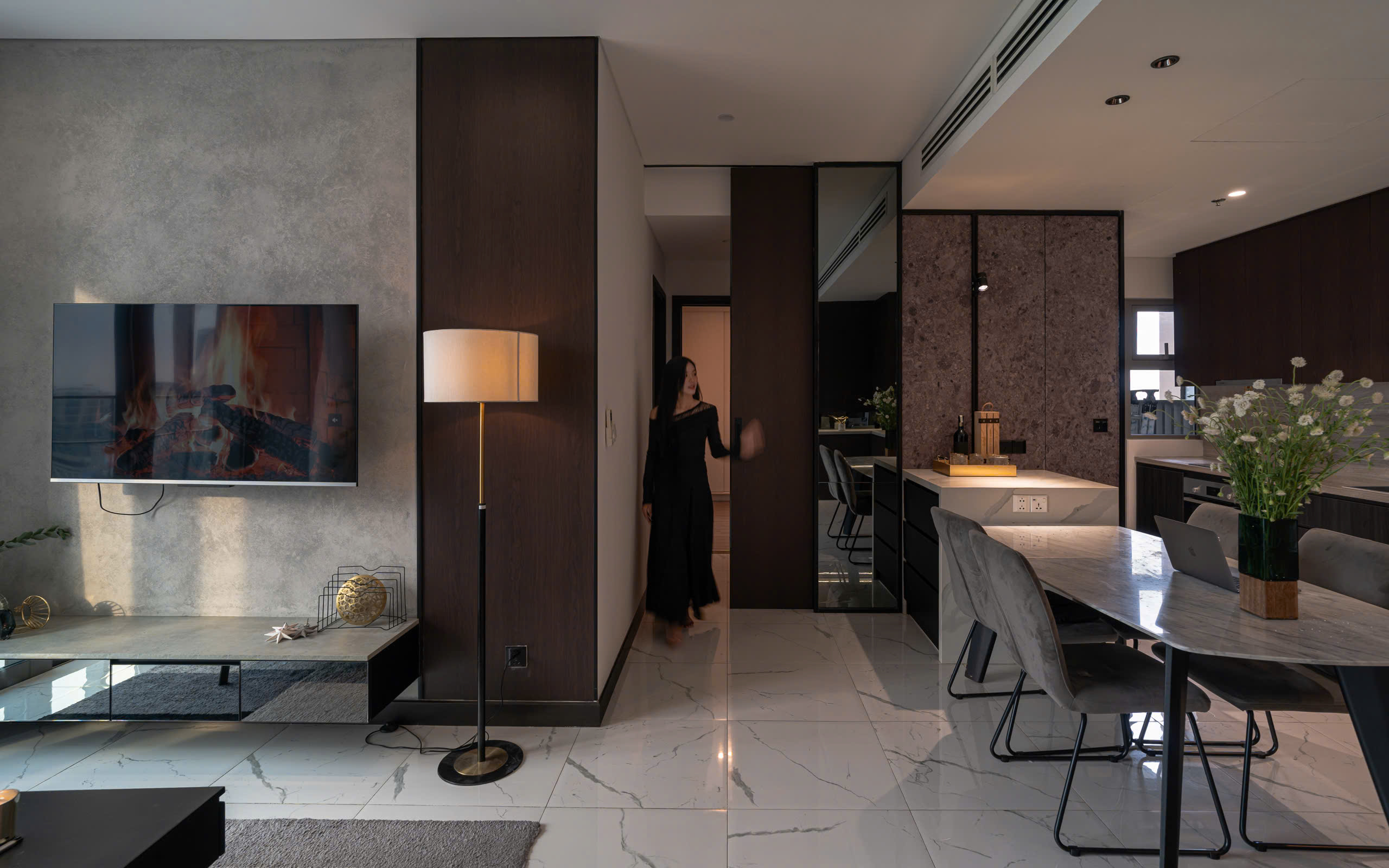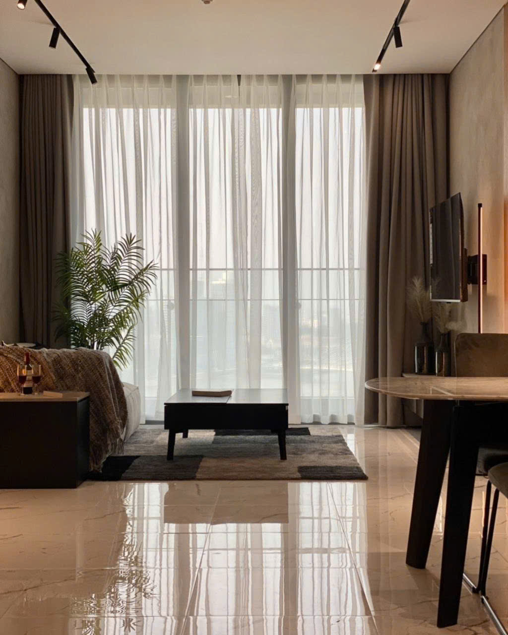 • Phòng khách rộng mở, ánh sáng tự nhiên tràn ngập, kết nối ra ban công view đẹp