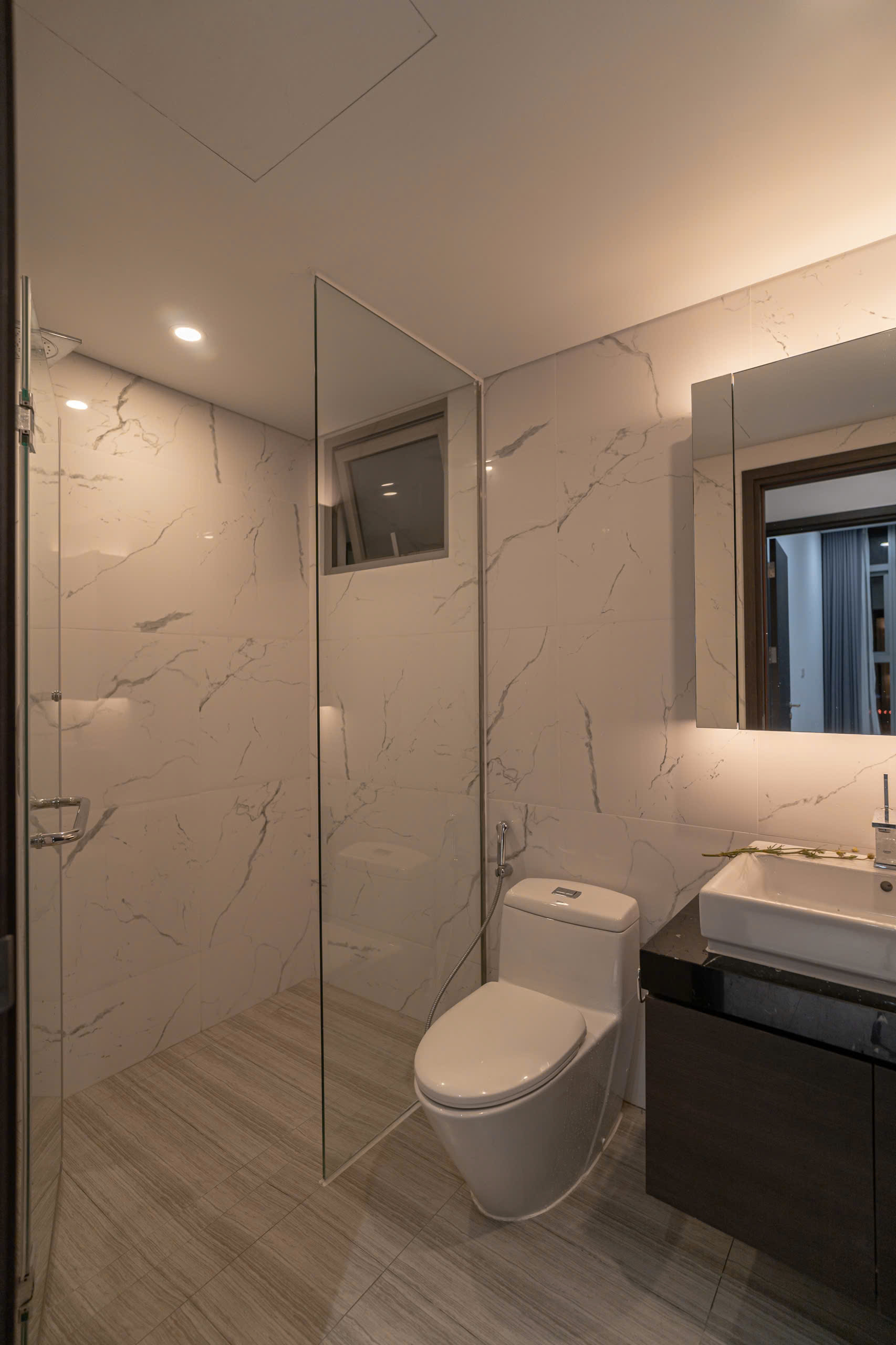 • Toilet hiện đại, thiết bị vệ sinh nhập khẩu, vách kính tắm đứng