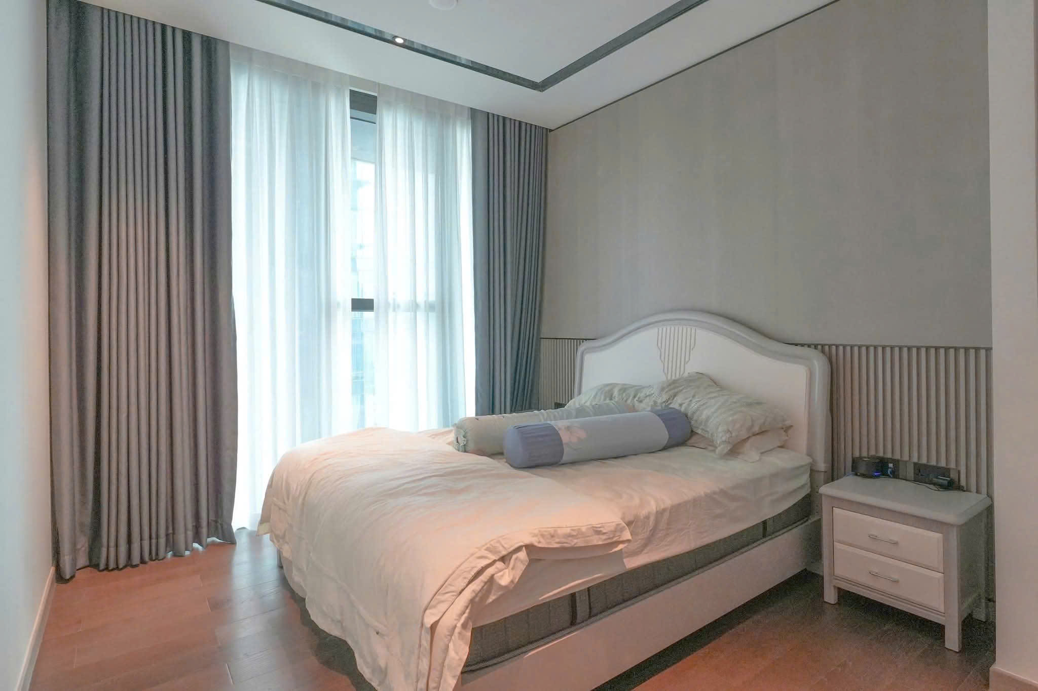 • Phòng ngủ riêng tư, có tủ âm tường lớn, view nhìn ra sông Saigon lung linh về đêm