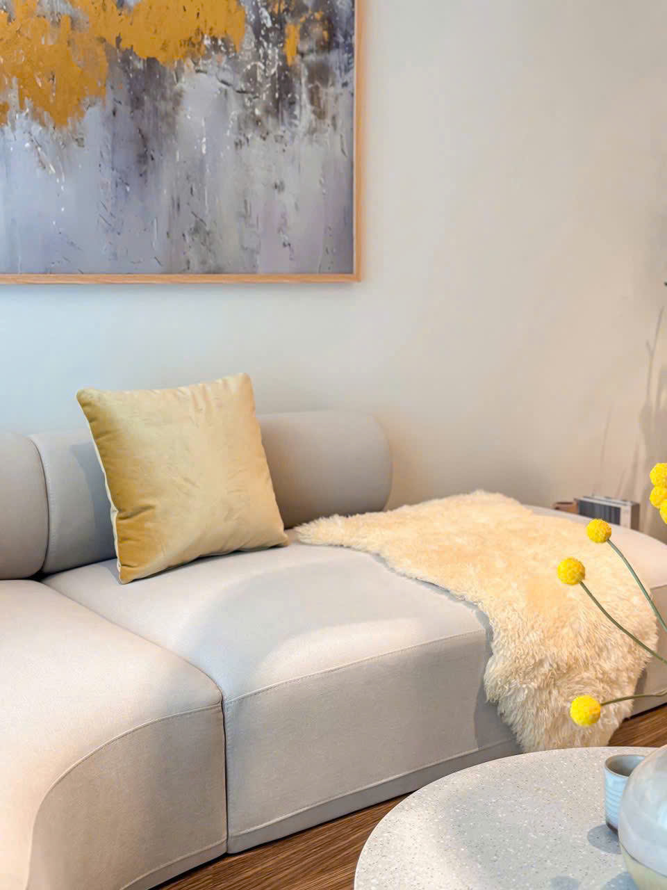 • Phòng khách rộng mở, ánh sáng tự nhiên tràn ngập, kết nối ra ban công view đẹp