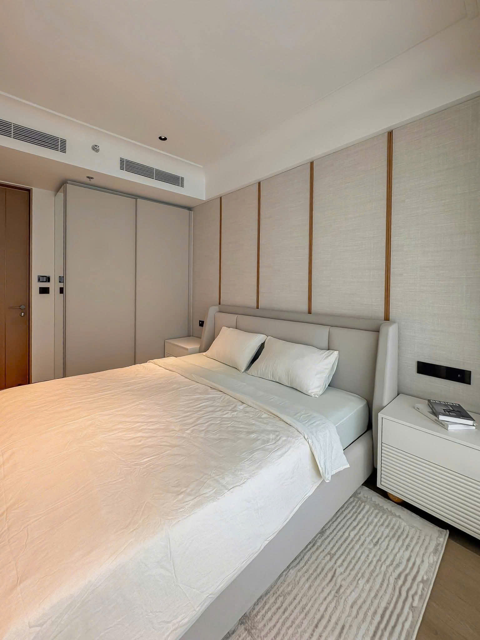 • Phòng ngủ riêng tư, có tủ âm tường lớn, view nhìn ra sông Saigon lung linh về đêm