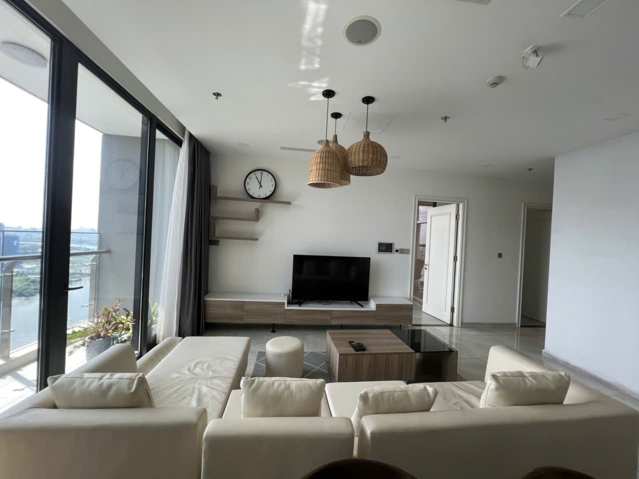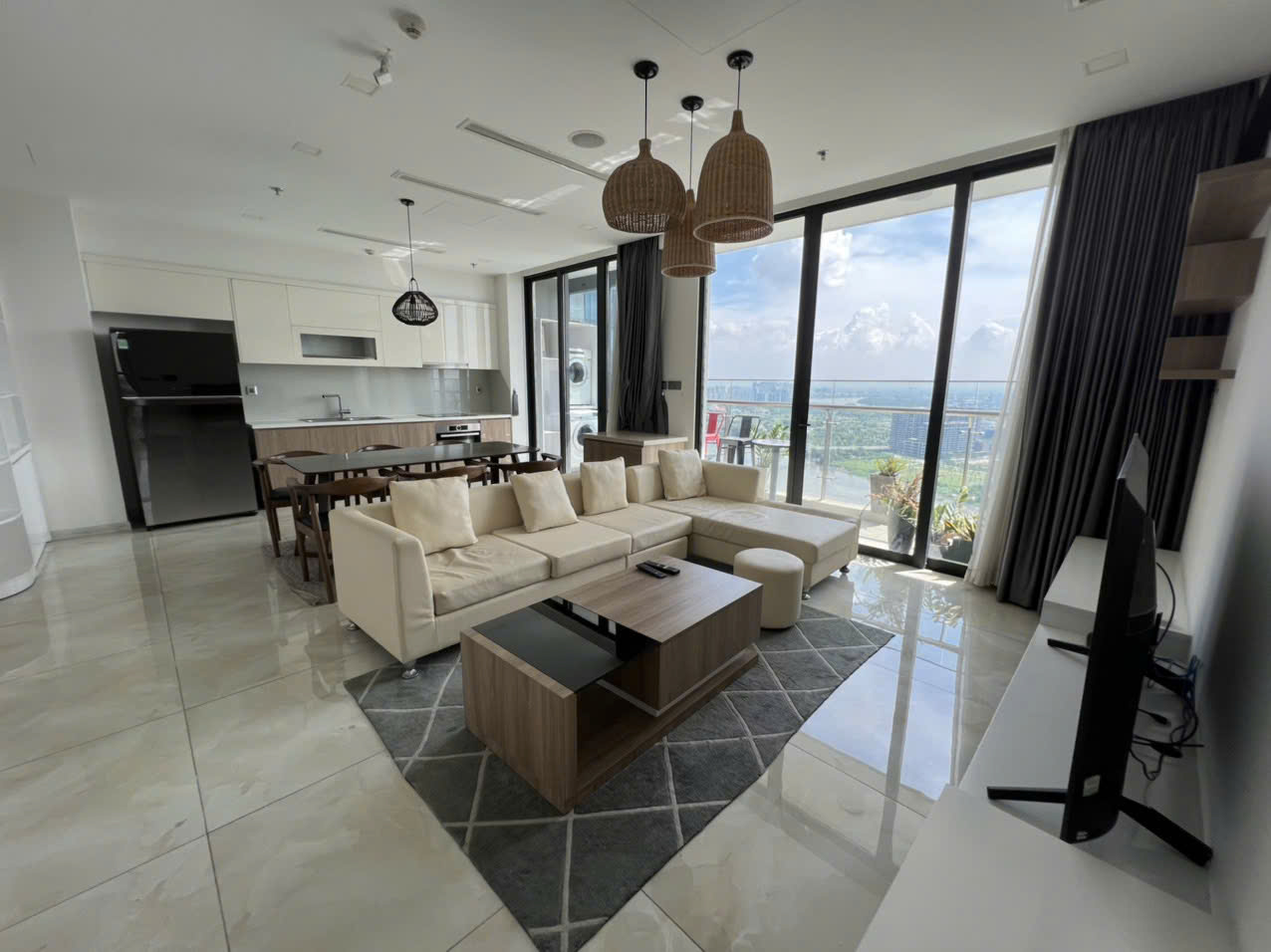 • Phòng khách rộng mở, ánh sáng tự nhiên tràn ngập, kết nối ra ban công view đẹp