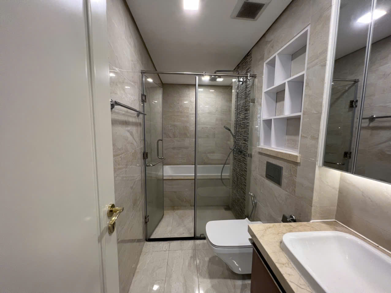• Toilet hiện đại, thiết bị vệ sinh nhập khẩu, vách kính tắm đứng