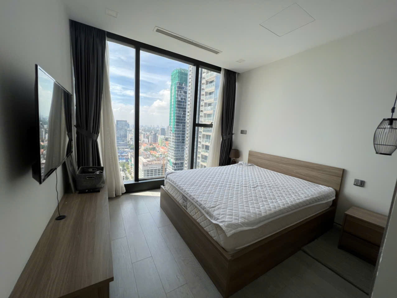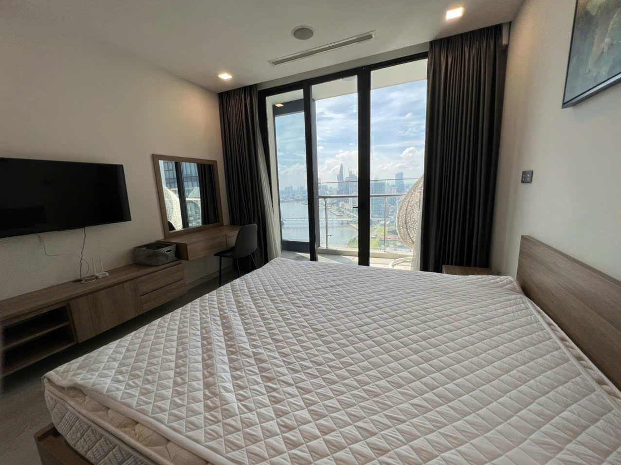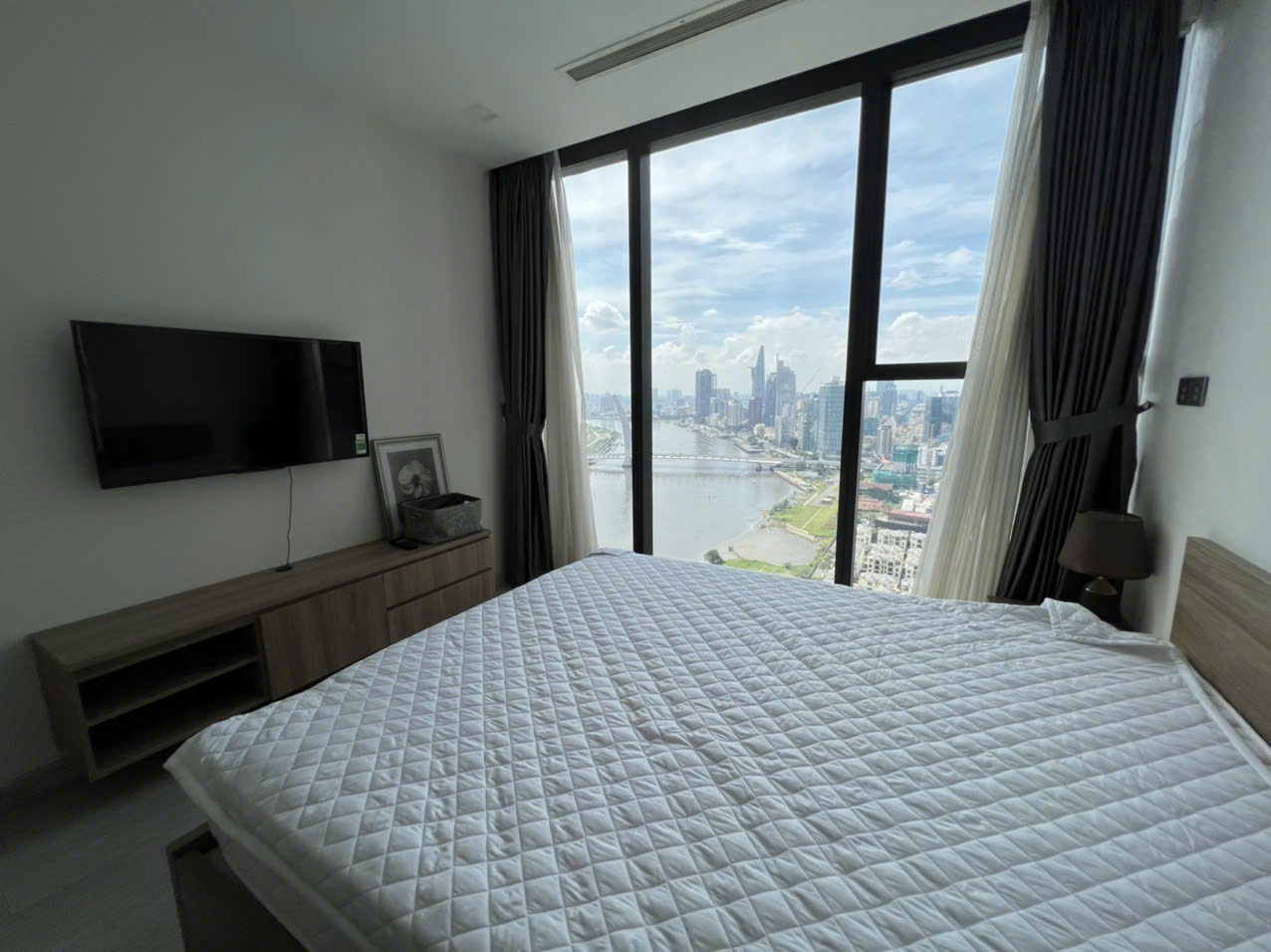 • Phòng ngủ riêng tư, có tủ âm tường lớn, view nhìn ra sông Saigon lung linh về đêm