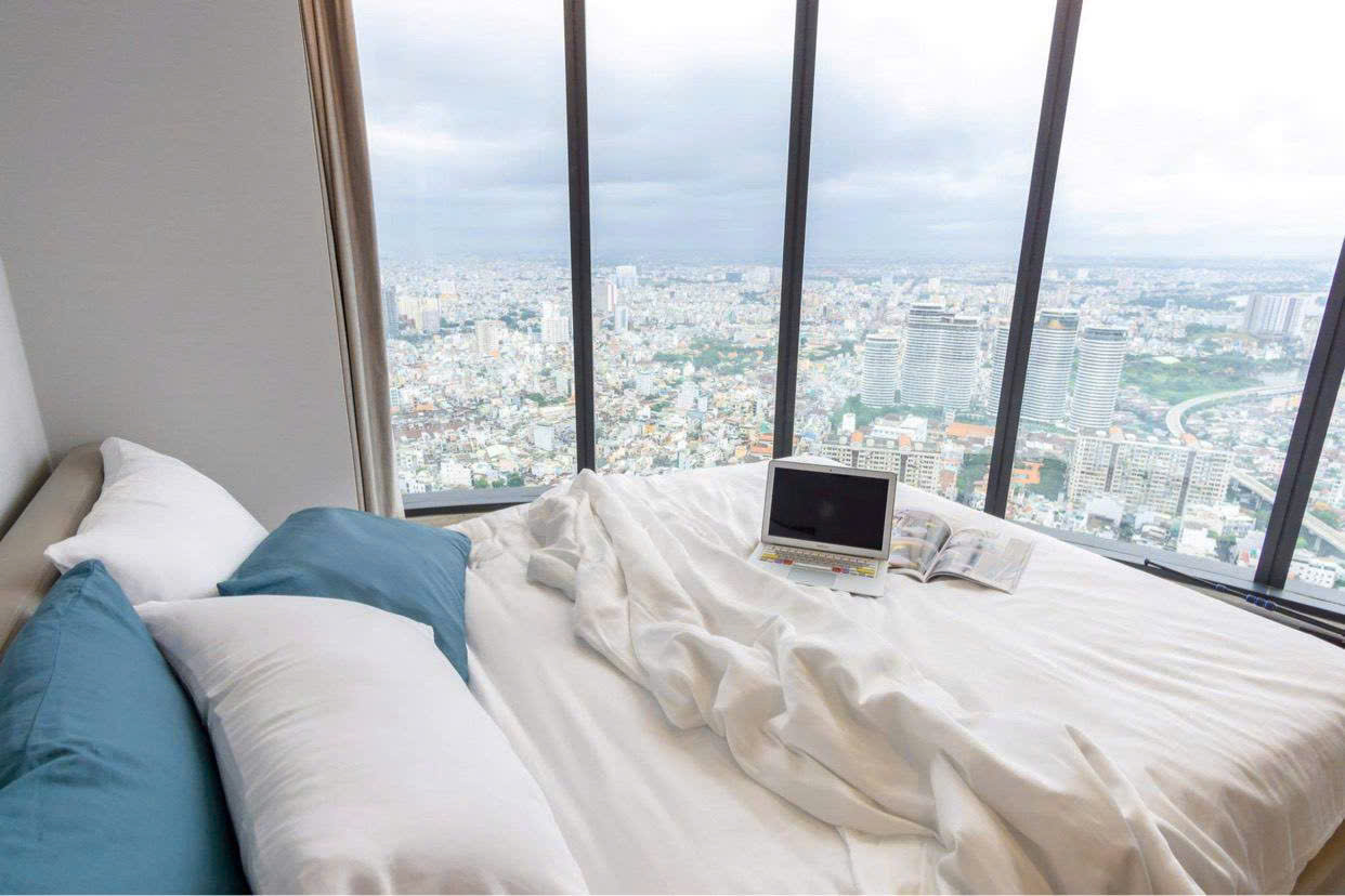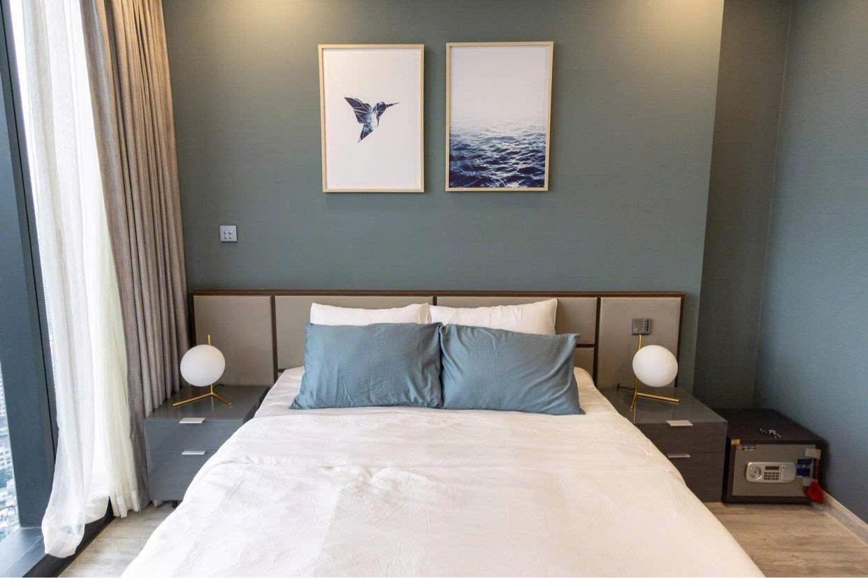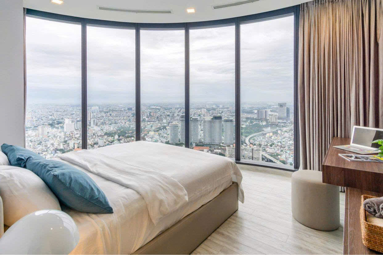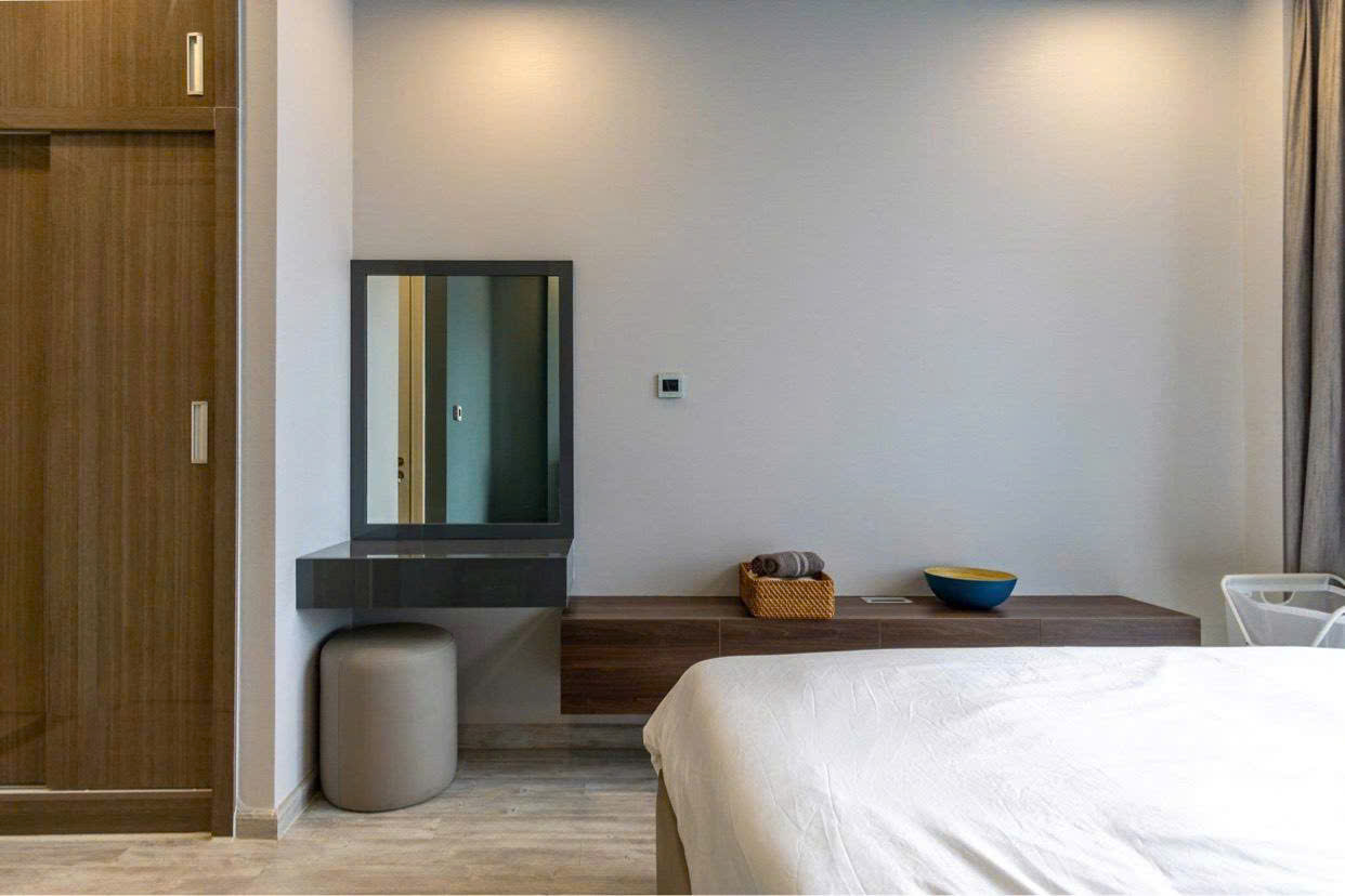 • Phòng ngủ riêng tư, có tủ âm tường lớn, view nhìn ra sông Saigon lung linh về đêm