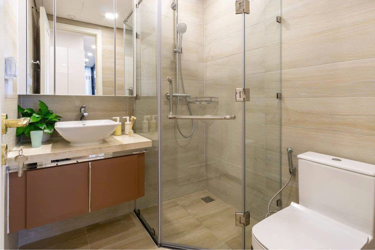 • Toilet hiện đại, thiết bị vệ sinh nhập khẩu, vách kính tắm đứng