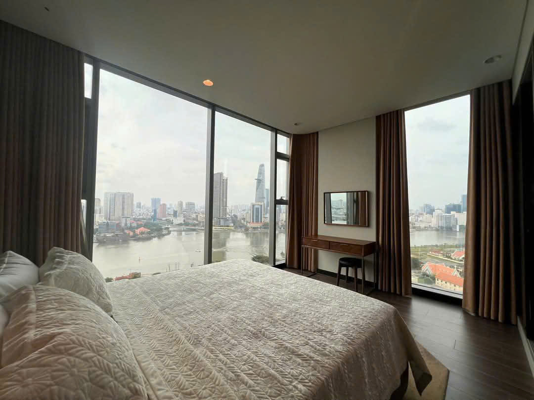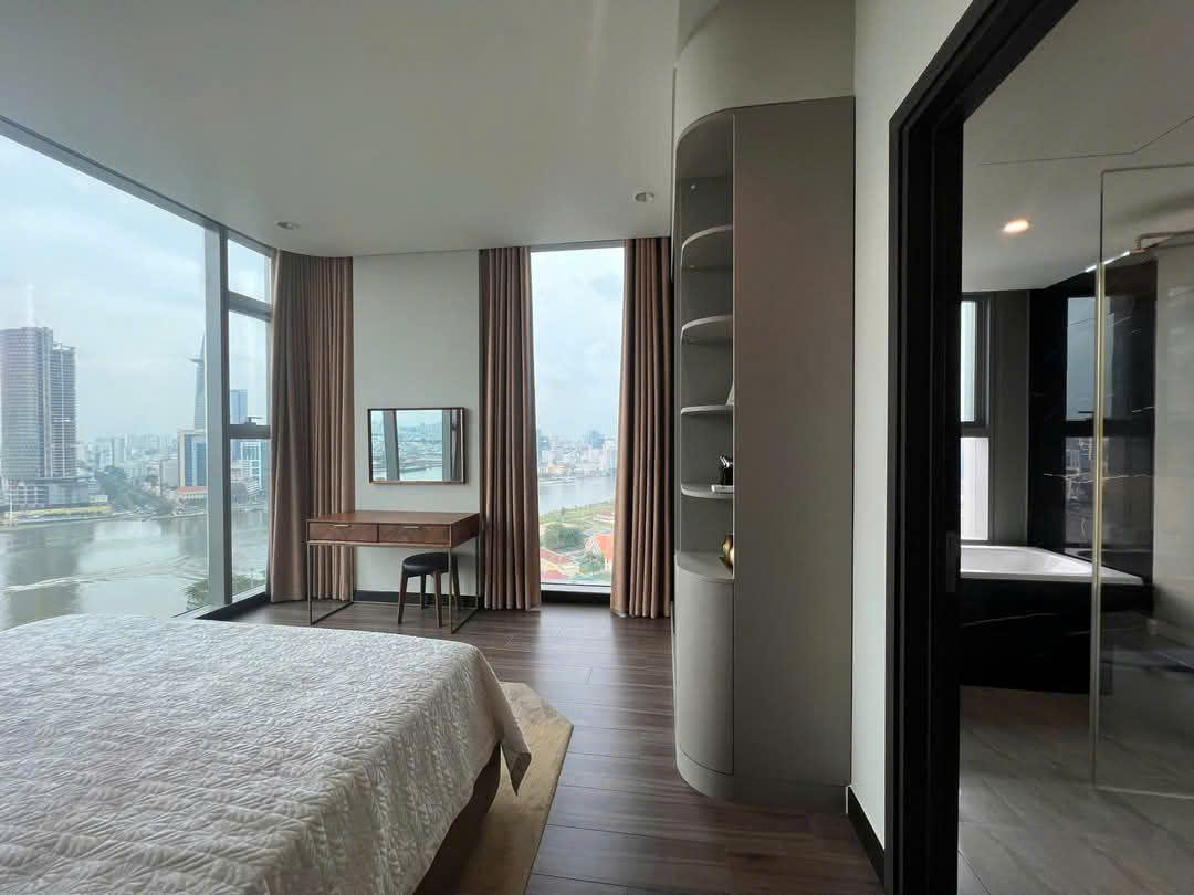 • Phòng ngủ riêng tư, có tủ âm tường lớn, view nhìn ra sông Saigon lung linh về đêm