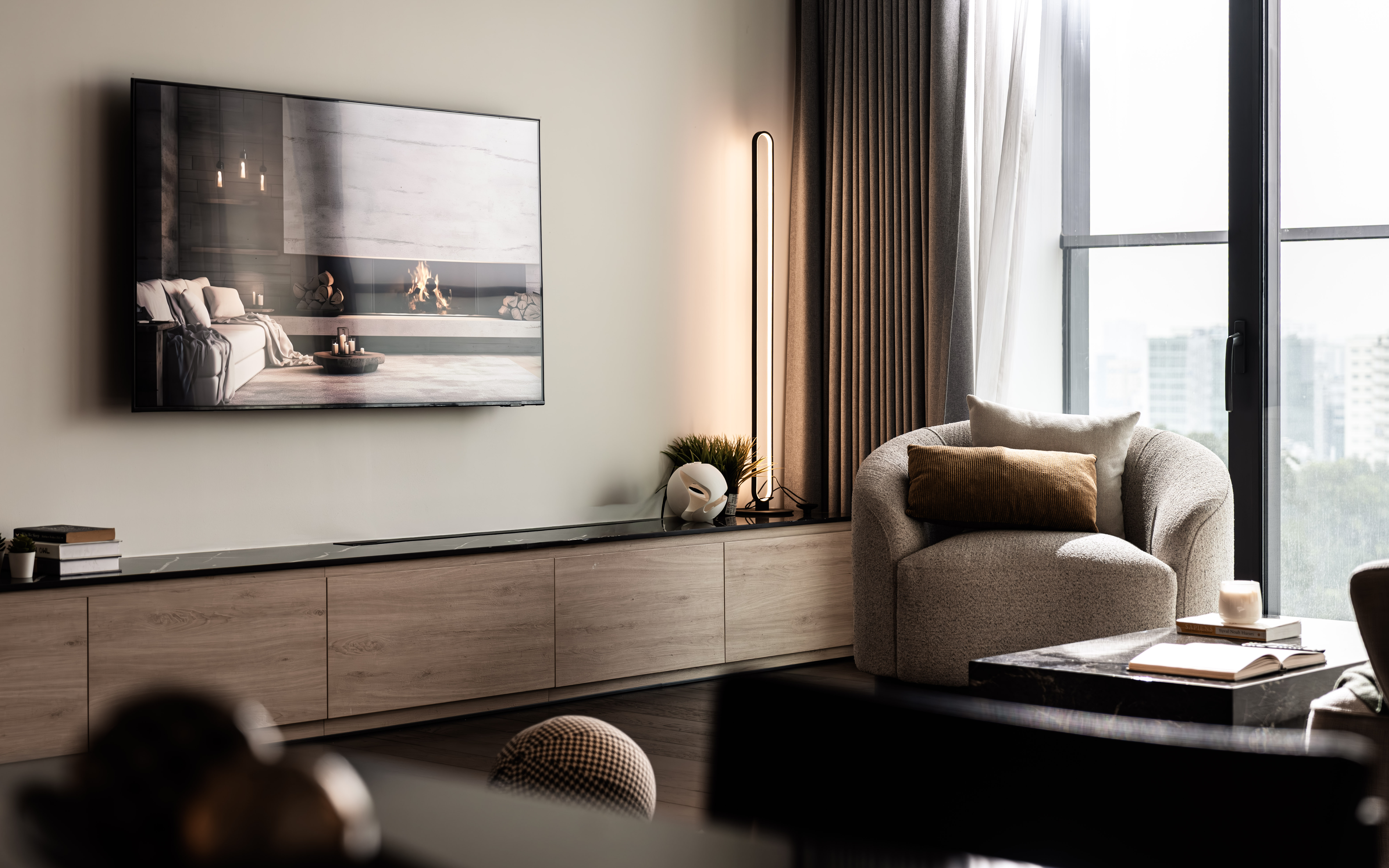 • Phòng khách rộng mở, ánh sáng tự nhiên tràn ngập, kết nối ra ban công view đẹp