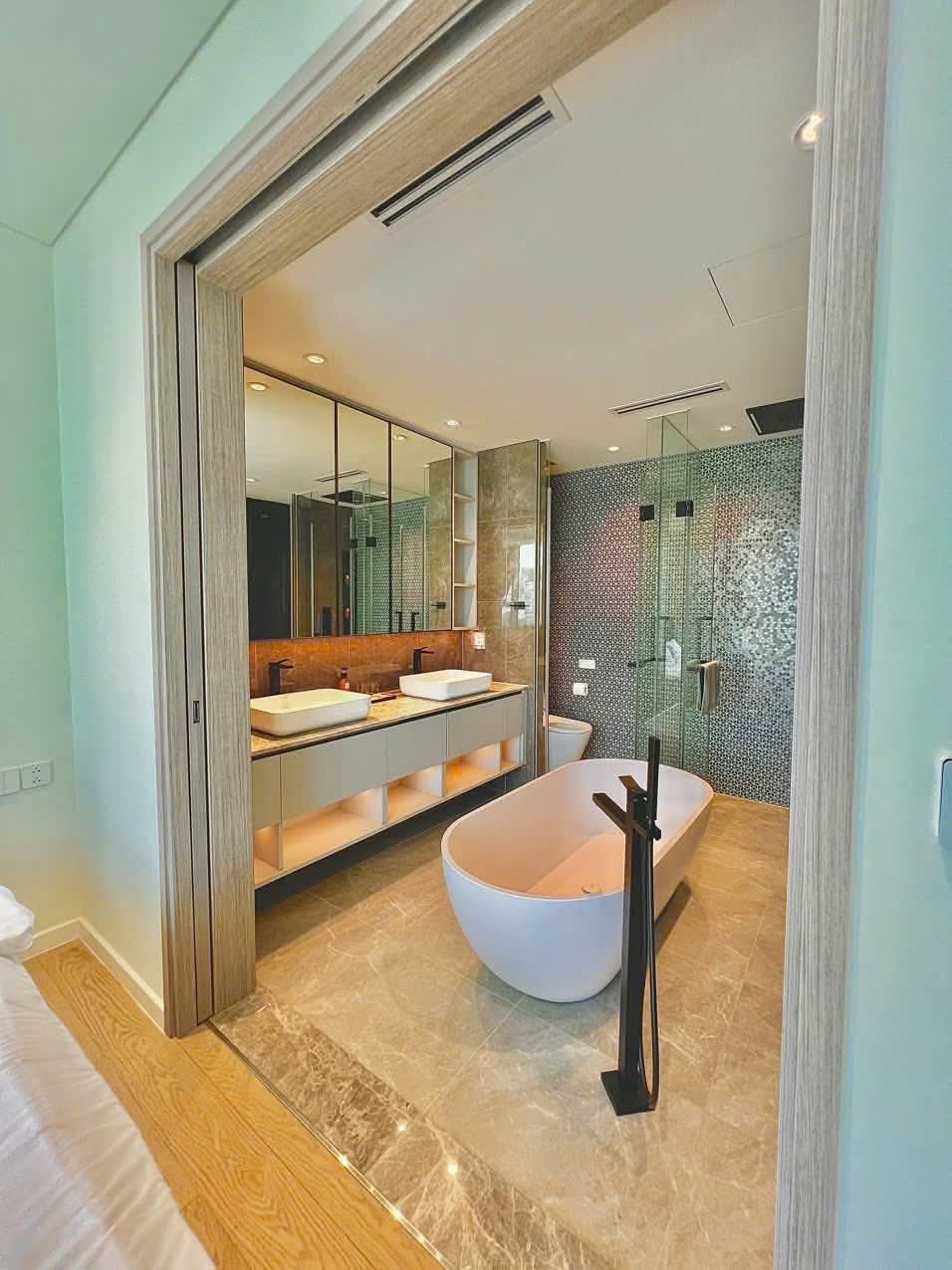 • Toilet hiện đại+ bồn tắm cực to vừa tắm vừa ngắm view tuyệt đỉnh.
