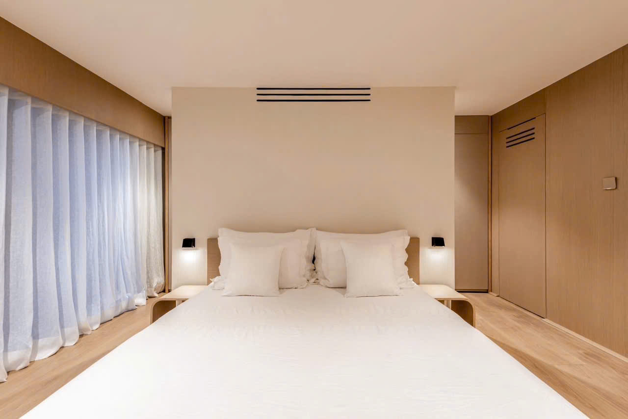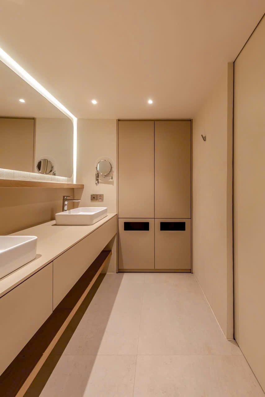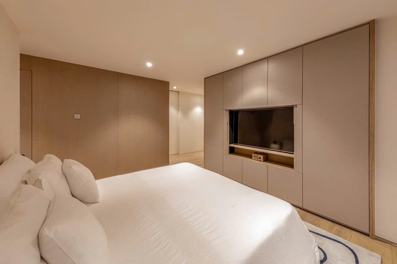 • Phòng ngủ riêng tư, có tủ âm tường lớn, view nhìn ra sông Saigon lung linh về đêm