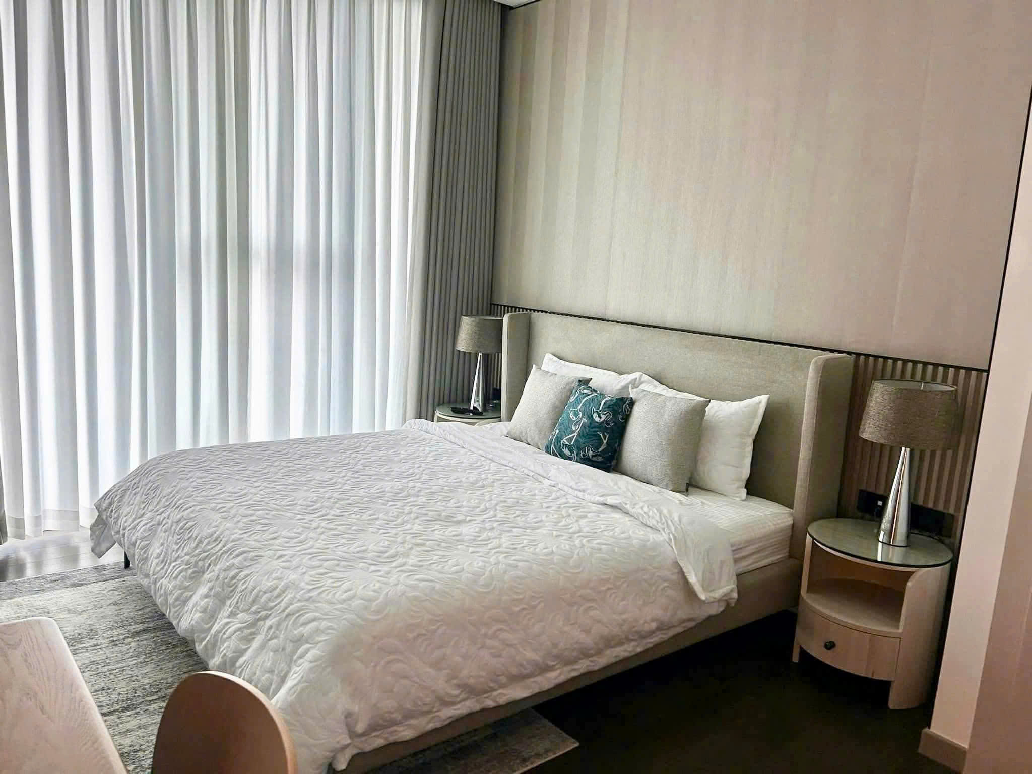 • Phòng ngủ riêng tư, có tủ âm tường lớn, view nhìn ra sông Saigon lung linh về đêm
