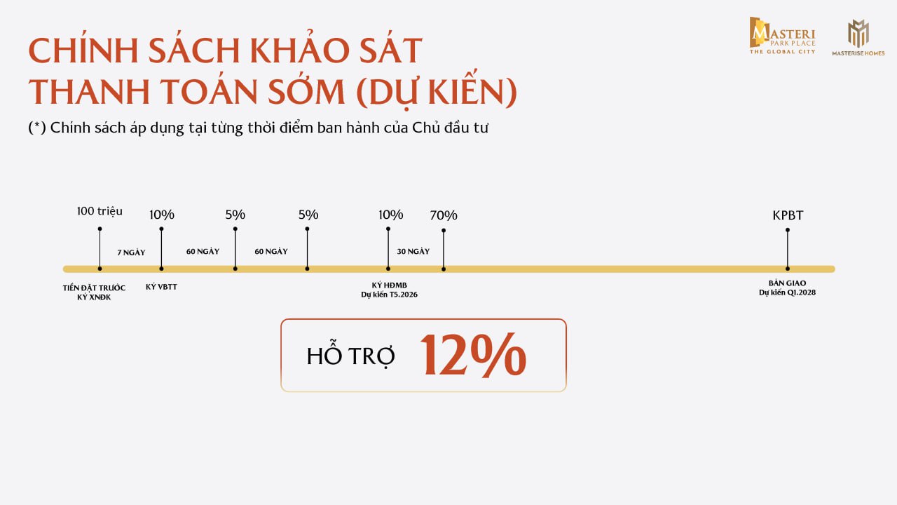 • Ưu đãi 2% dành cho cư dân Masterise Homes đến hết ngày 30/11/2025