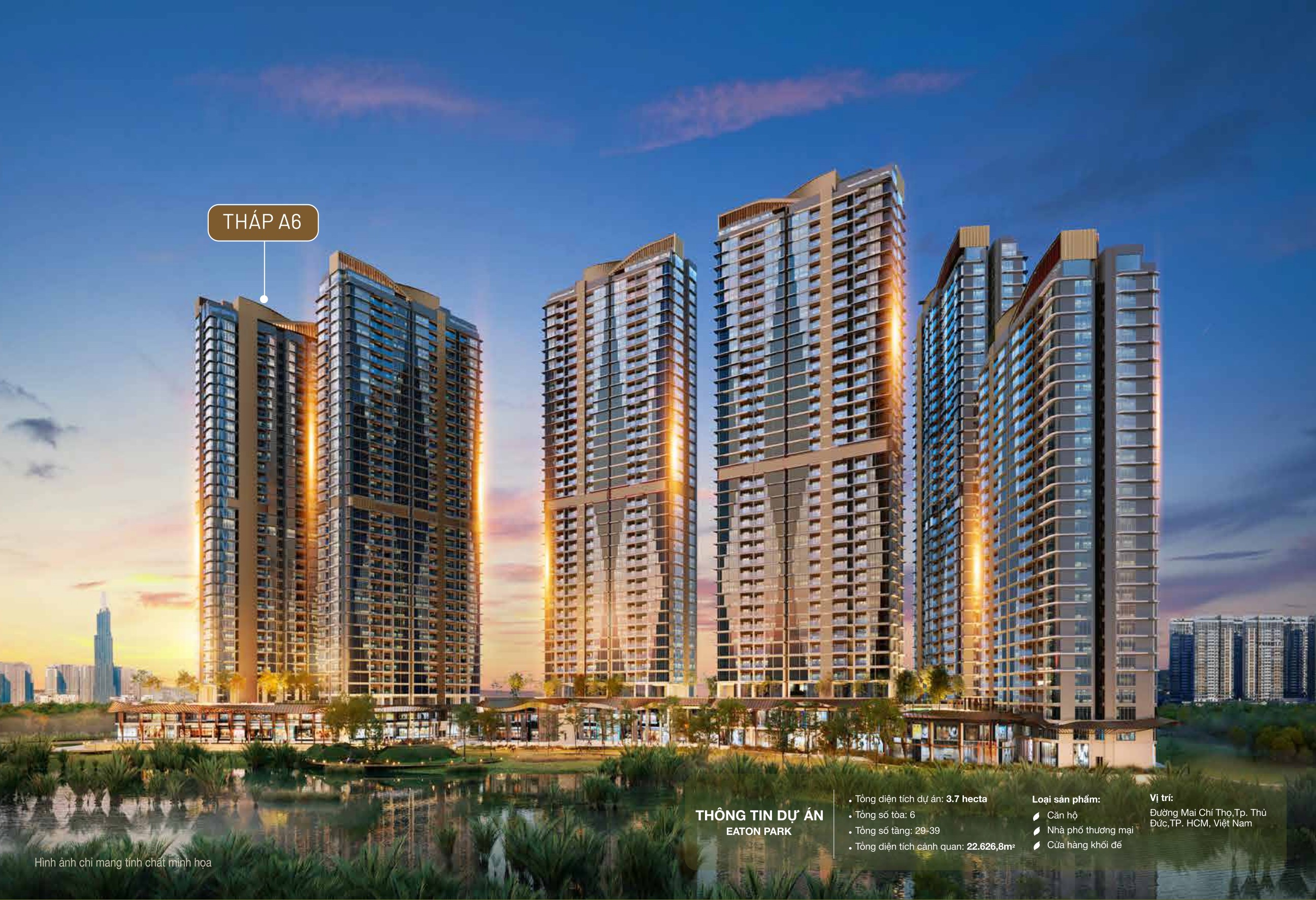 Như vậy Tòa A5- Grove,Tòa A6-Strait thuộc phân khu 2, Bố trí Tòa A5 view hướng về khu TDTT Nam Rạch Chiếc, Tòa A6 view hướng về trung tâm Q1 và Thủ Thiêm.Dự án Eaton Park -quận 2 được phát triển bởi Nhà Phát Triển Bất Động Sản số 1 Malaysia -Gamuda Land.