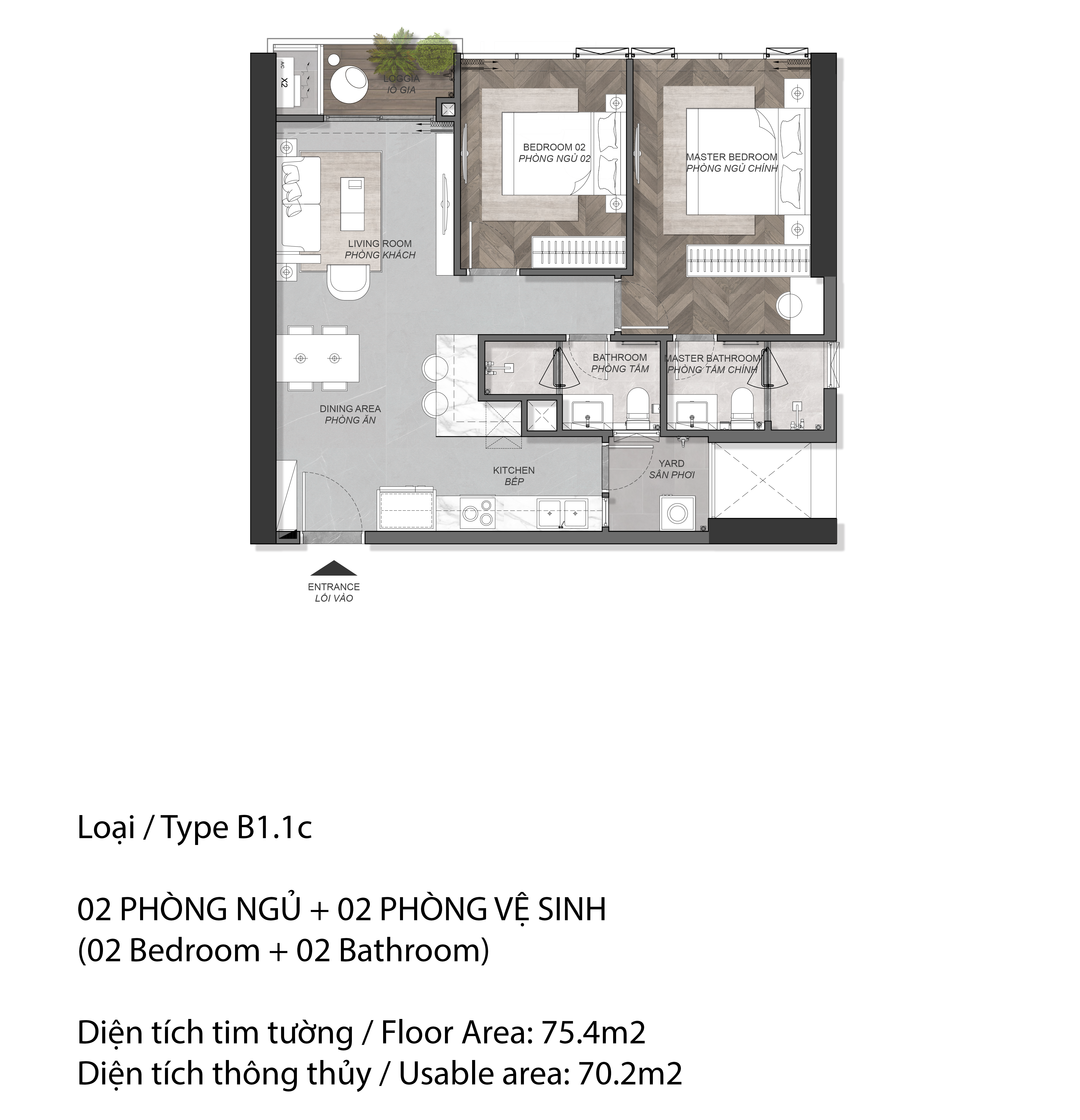 Loại căn 2 phòng ngủ