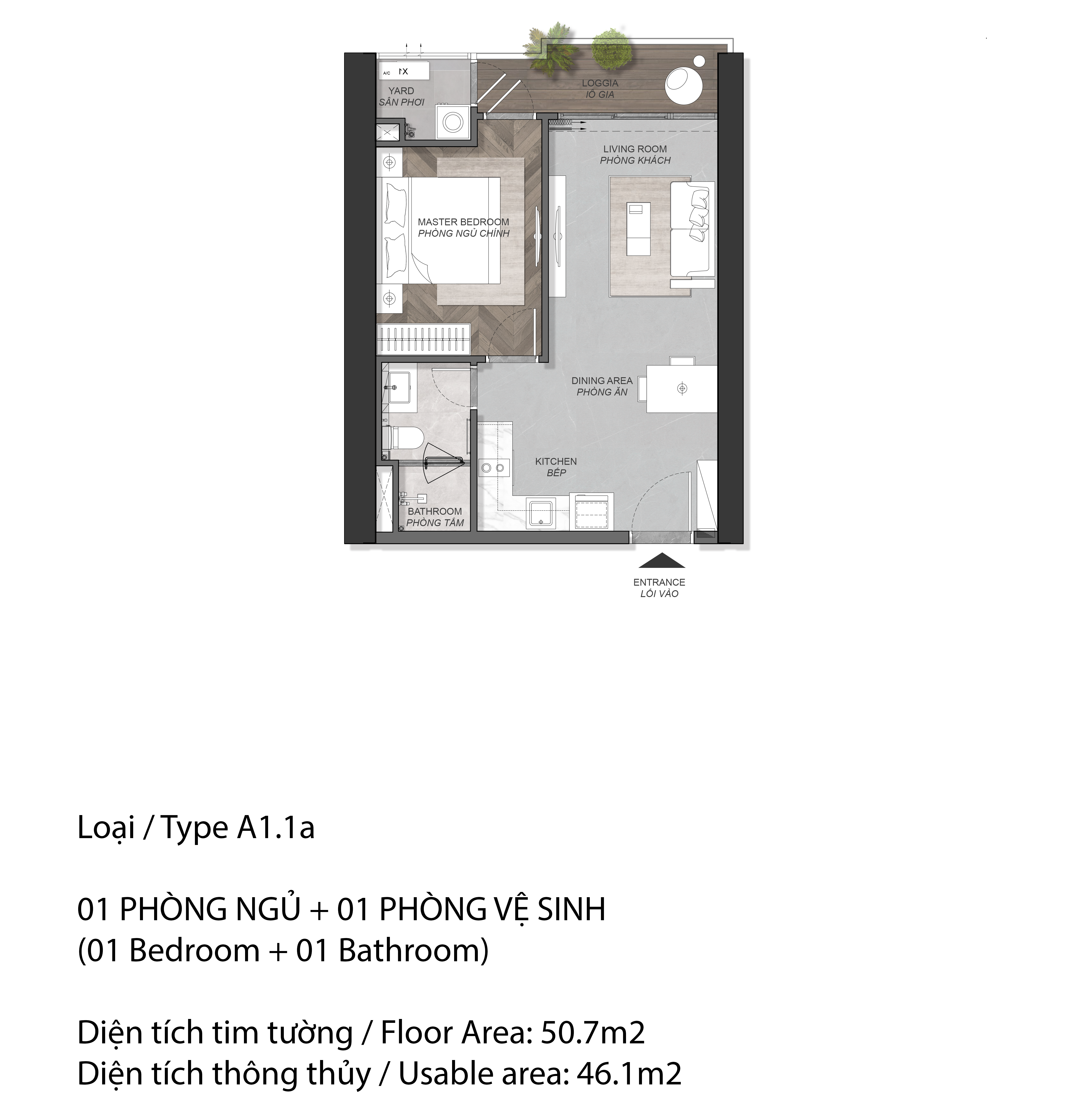 Loại căn 1 phòng ngủ