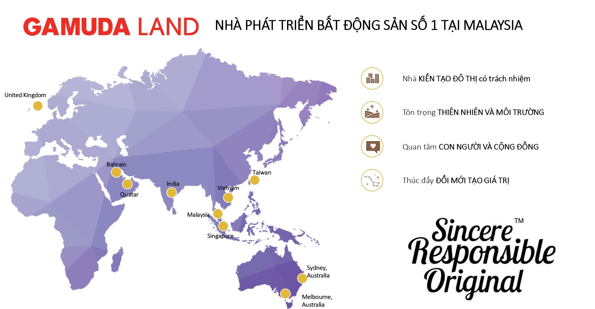 Gamuda Land, công ty phát triển bất động sản đến từ Malaysia, được thành lập vào năm 1995 với tư cách là một phần của Gamuda Berhad. Sau gần 20 năm tại Việt Nam, Gamuda Land Việt Nam đã đạt được nhiều thành tựu nổi bật tại Hà Nội và Hồ Chí Minh.Tiếp nối những thành tựu đã đạt được, Gamuda Land Việt Nam đang không ngừng mở rộng dấu ấn thông qua hàng loạt Dự án xoay vòng vốn nhanh (Quick Turnaround Projects – QTP) tại thành phố Thủ Đức, Thủ Dầu Một, Nhơn Trạch, Hải Phòng và Bình Chánh, nâng tổng số dự án tại Việt Nam lên 8.